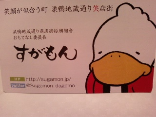 なぜか今日はとげぬき地蔵で有名な巣鴨に出没tv番組「はなまるマーケット」の取材を遠目に眺めながら、ゆるキャラ「すがもん」に名刺を貰って帰ってきましたよ