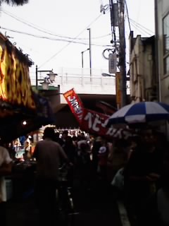 もう、こんな時期なんですねぇ 祭りですよ、祭り!近所でやってた祭りですが、一枚は暗くて、もう一枚はどこかの親父の後頭部しか写っていませんが……